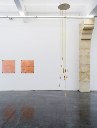 «Appelants, une sculpture suspendue au plafond. Des tiges de laiton de longueurs inégales supportent des formes, tournées sur bois par l’artiste, inspirées d’appeaux, instruments utilisés lors de la chasse pour produire un son destiné à attirer les oiseaux ou le gibier. Ces appeaux-là, garnis en leur coeur d’une balle de fusil Remington utilisée pour la chasse au chevreuil, semblent avoir cessé d’émettre tout son. Sont-ce les appeaux ou bien celles et ceux qu’ils appellent qui ont été réduit·e·s au silence ? Au souffle nécessaire pour faire sonner l’appeau a succédé le sifflement de la balle.»